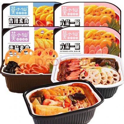 首页 > 食品名酒 > 莫小仙 自热小火锅4盒装 六菜一肠250*2盒+香辣素食240g*1盒+番茄素食300g*1盒 方便速食懒人火锅